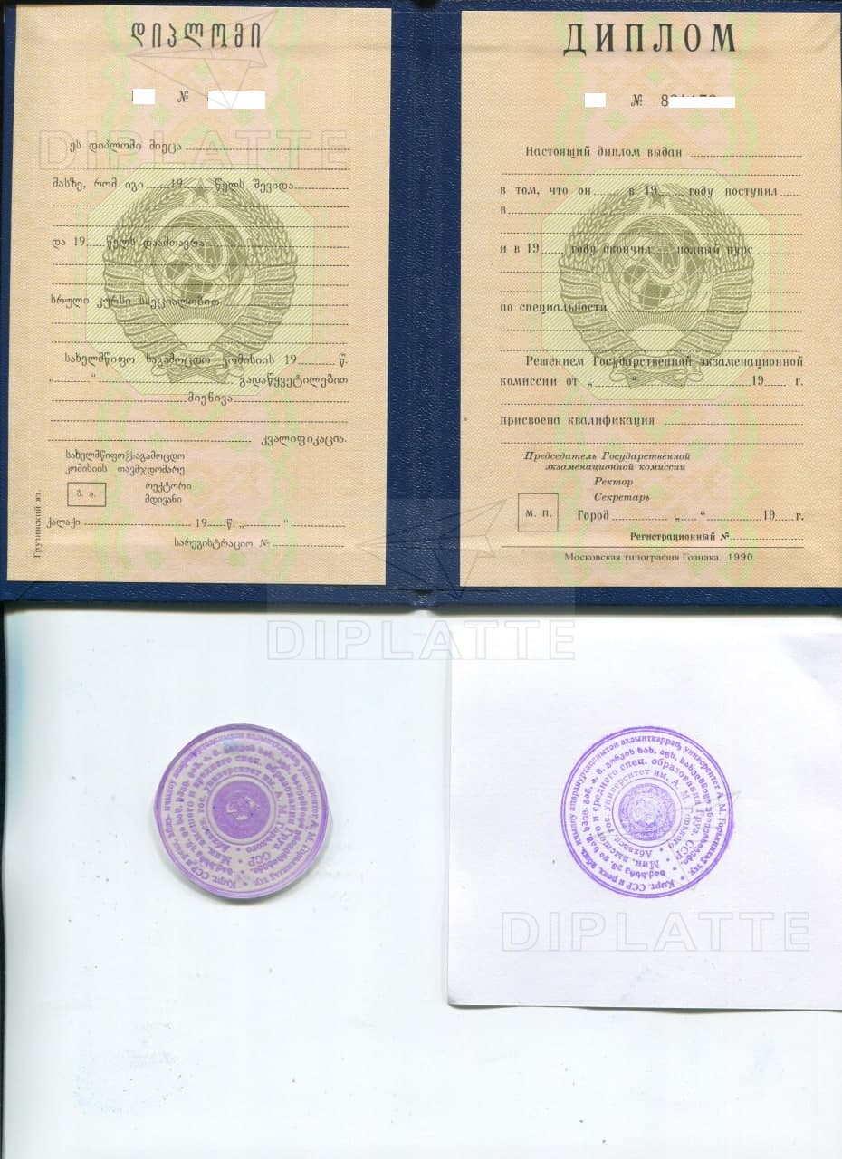 Многие жители СНГ или россияне переехавшие из бывших союзных республик хотят сделать диплом. Эти дипломы были на двух языках — справа сторона заполнялась на русском, слева на национальном. Мы можем сделать диплом не только РСФСР, но и остальных 14 союзных республик. Но есть нюанс! Мы не все языки знаем и какие-то республики делаем только бланк и печать (смотрите образец). А заполнение вам придётся делать уже самим. Да это дешевле стоит, но проблема заполнить. Причём сторону на русском мы вам покажем как заполнить — вышлем макет. Вам останется только самому понять как заполнить левую сторону на национальном языке. Итак какие республики мы делаем бланки, а какие можем сами заполнить?
