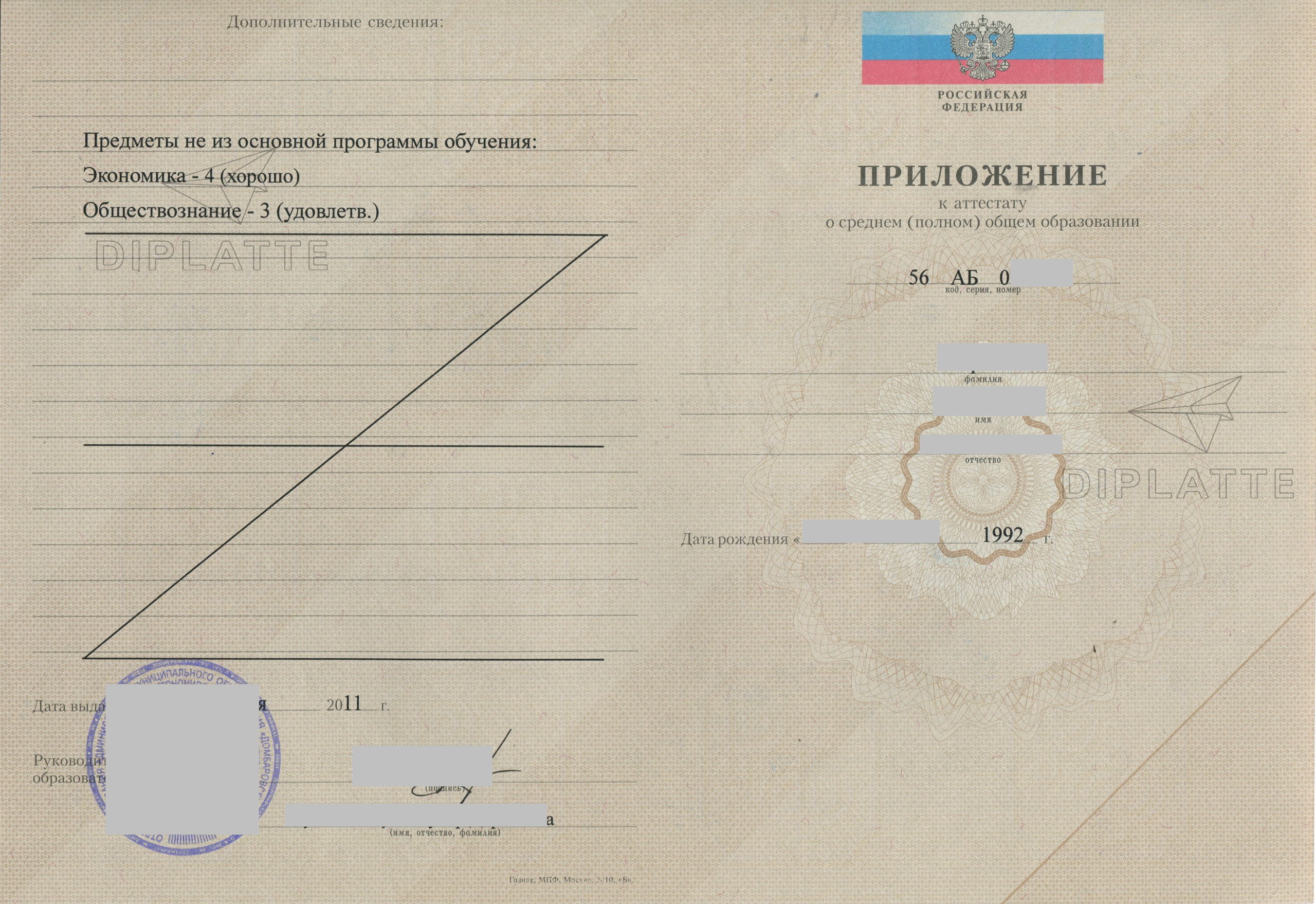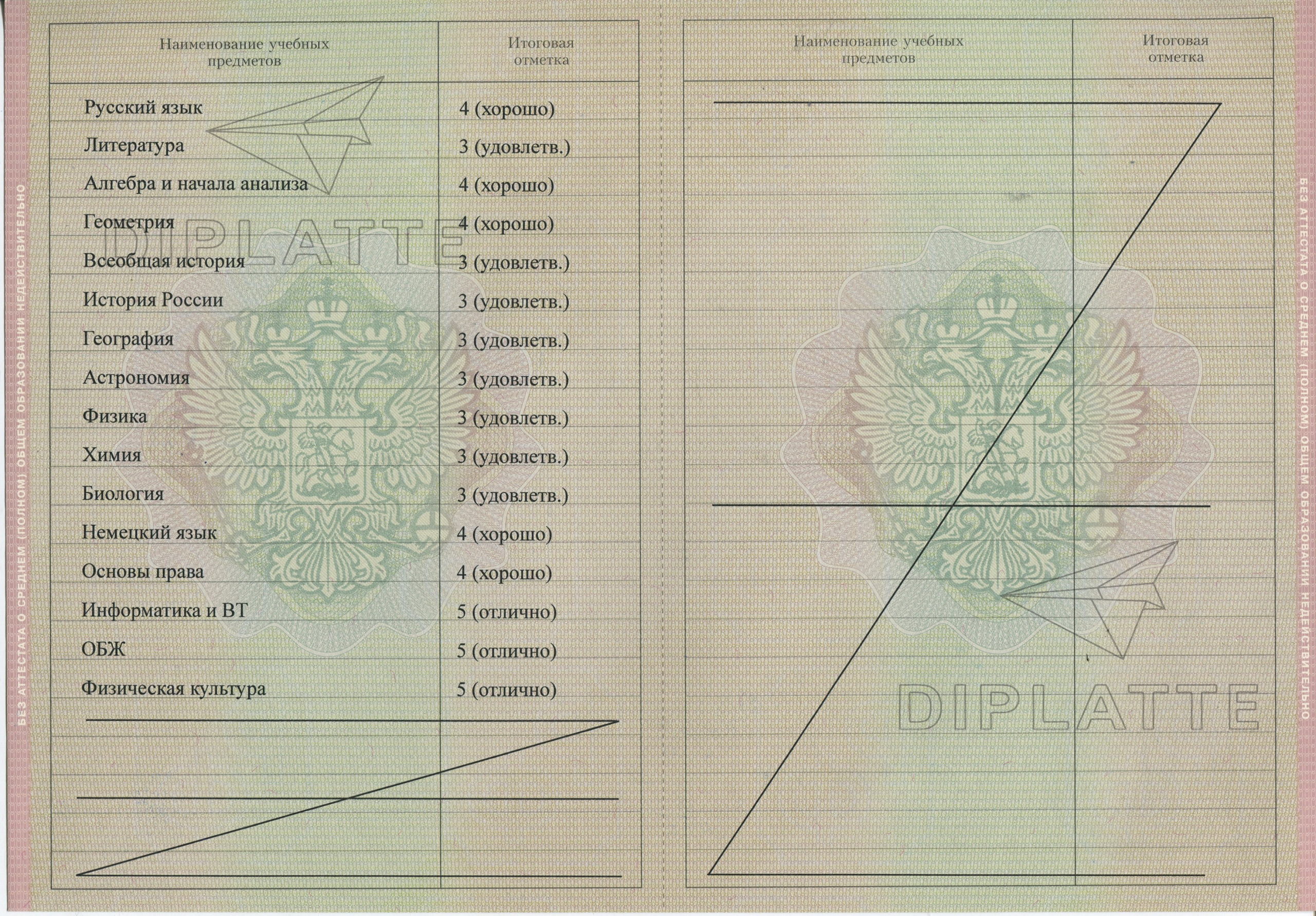 Мы делаем аттестаты более 20 лет. Не только за 11 классов. Осуществляется доставка в Москве, регионах России и заграницу. При оформлении документа не требуется ваше физическое присутствие. Заказ и обсуждение производится по телефону. После того, как аттестат будет готов вам дадут как следует рассмотреть его. И заплатите вы только после того, как убедитесь в его качестве. Купить аттестат за 11 классов проще простого в компании профессионалов «Диплатте»!
