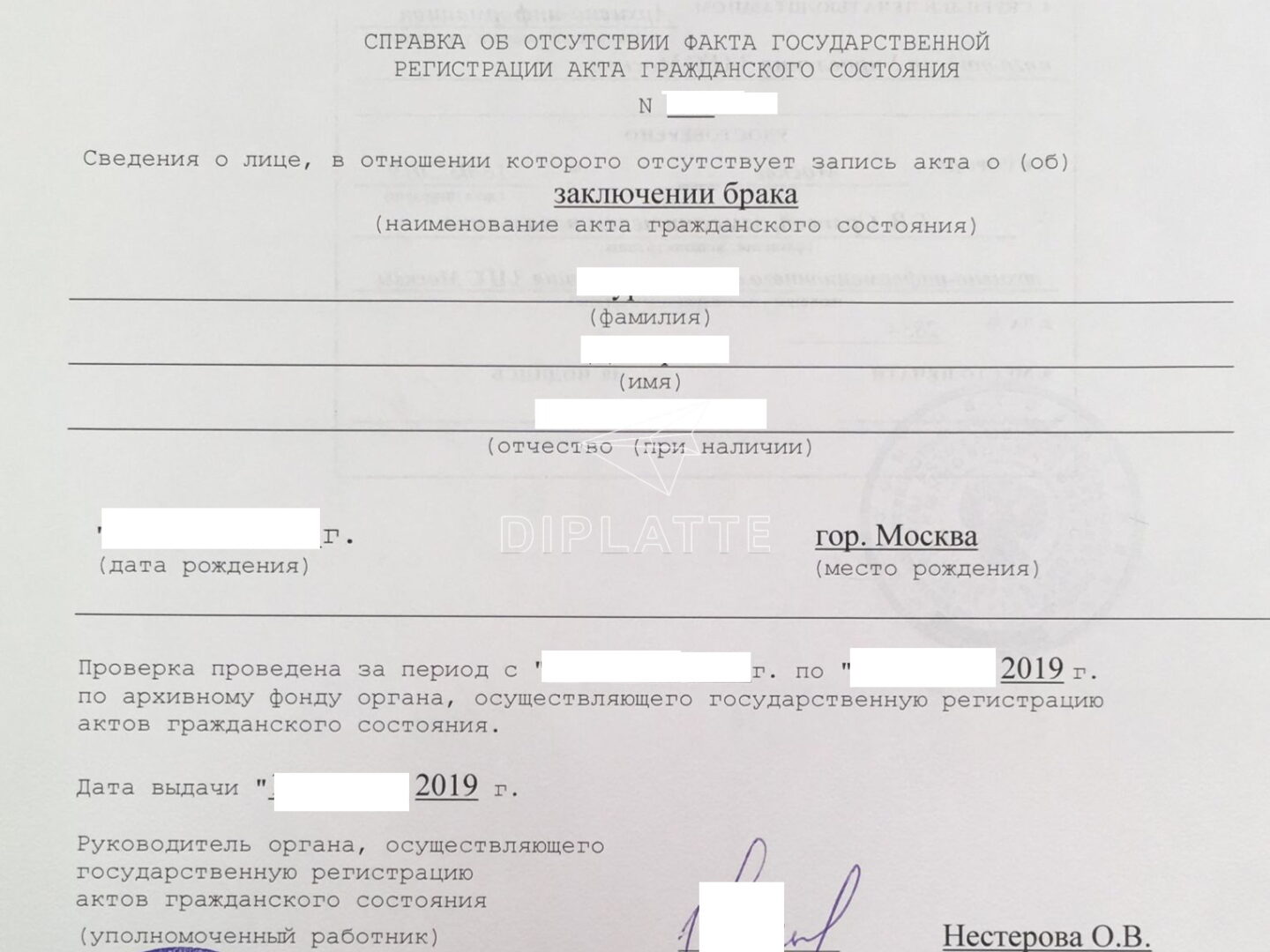 Справка о безбрачии